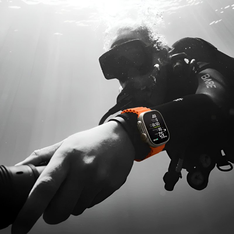 Built to last, the watch is waterproof and crafted with an ultra-titanium 49mm case, combining durability with style.