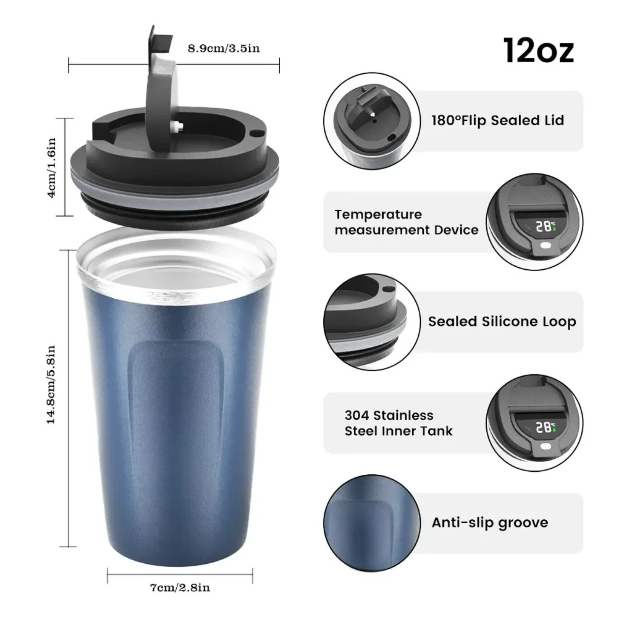 Customized Smart LED insulated Metal Flask Mug – Blue