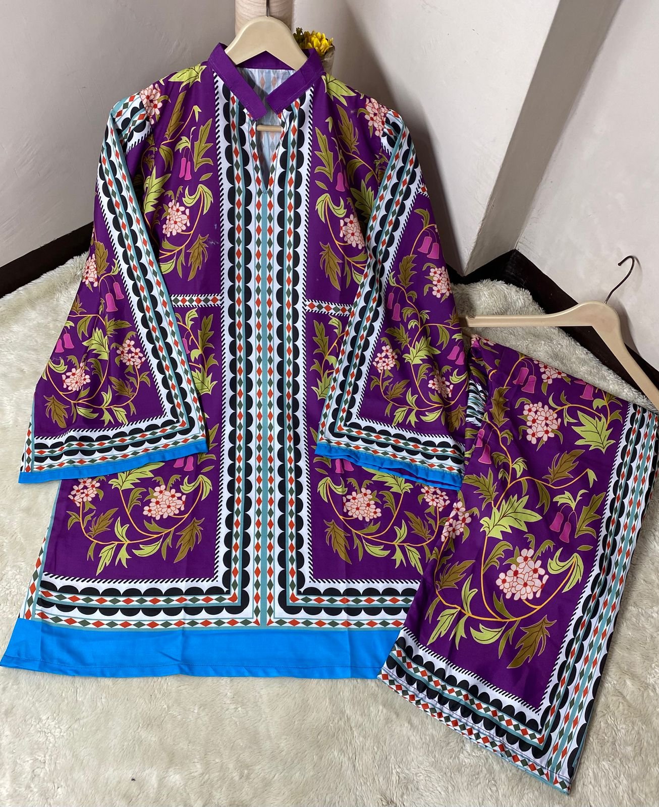 Be the first to review “Digital printed cord set Good quality stitching Full suit overlock”