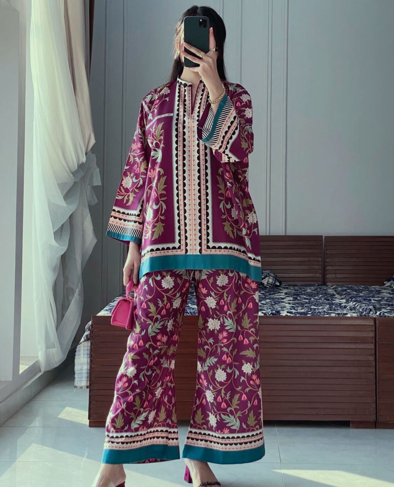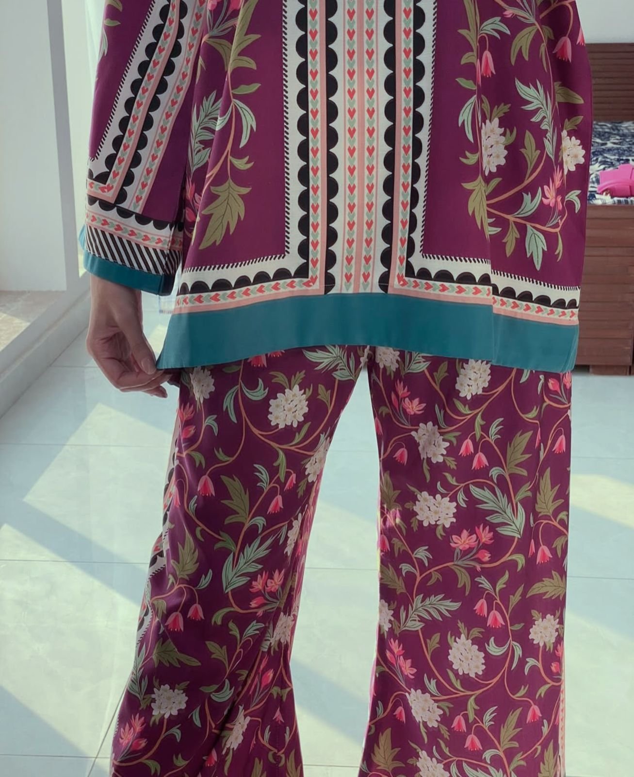 Digital printed cord set Good quality stitching Full suit overlock