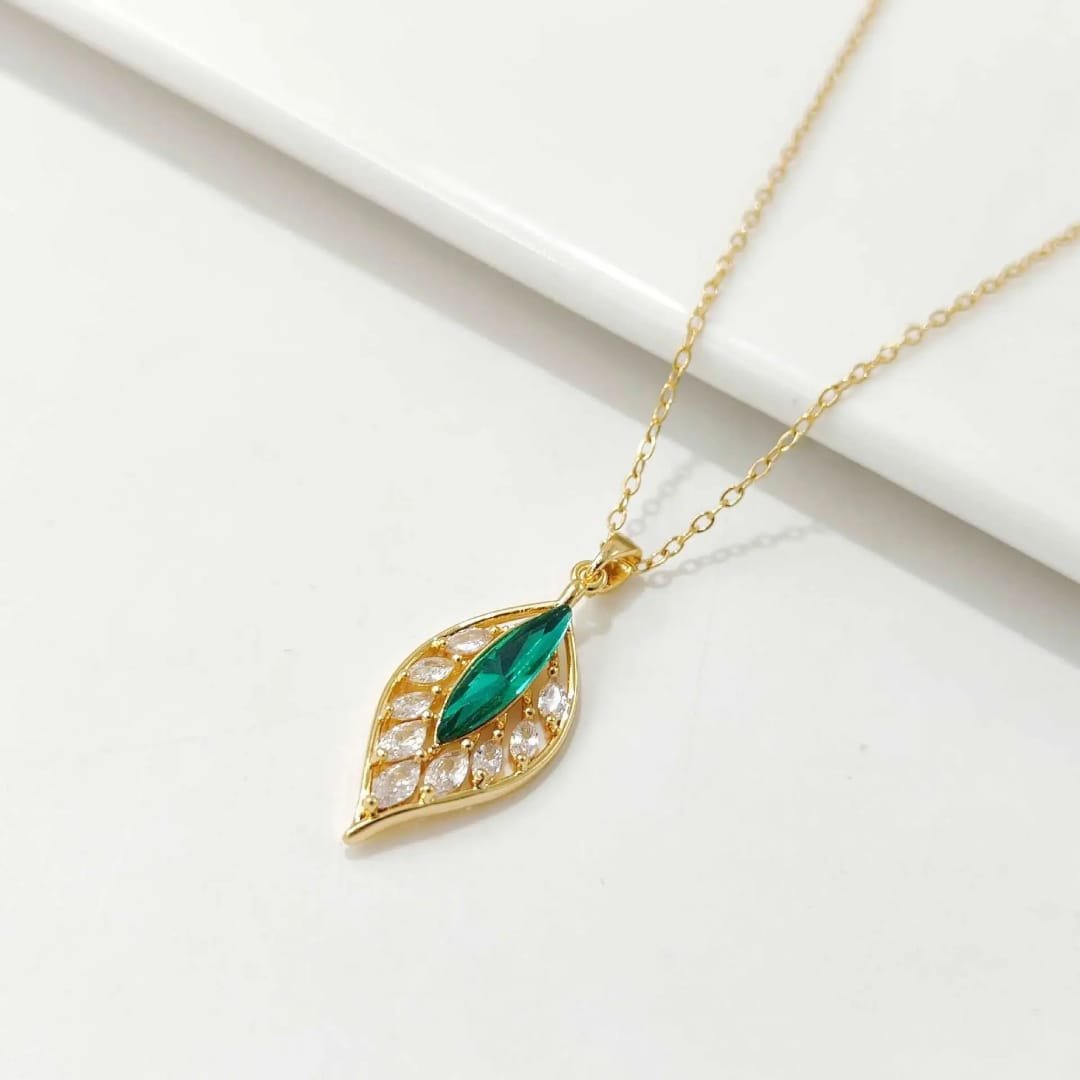Leaf Zircon Necklace In Stainless Steel Premium Quality Tarnish Free ✨✨✨✨