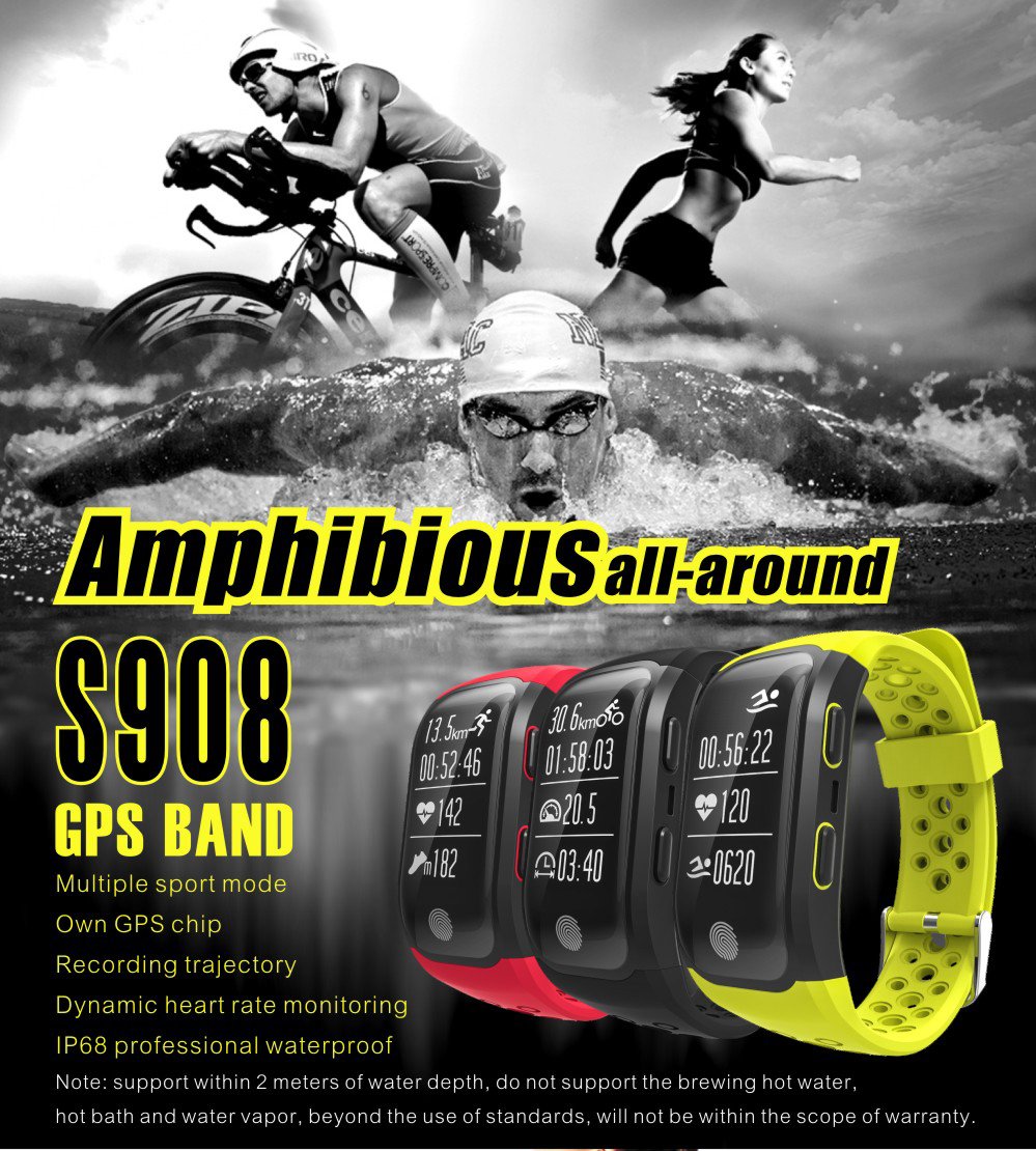 S908 GPS Smart Band IP68 Waterproof Sports Wristband Heart Rate Monitor Call Reminder
