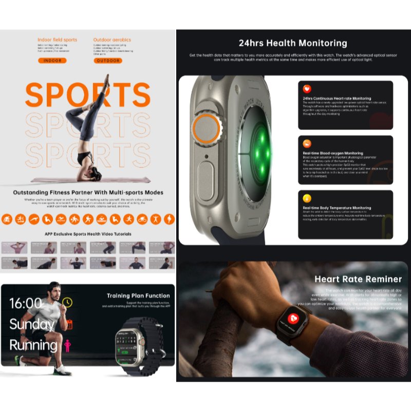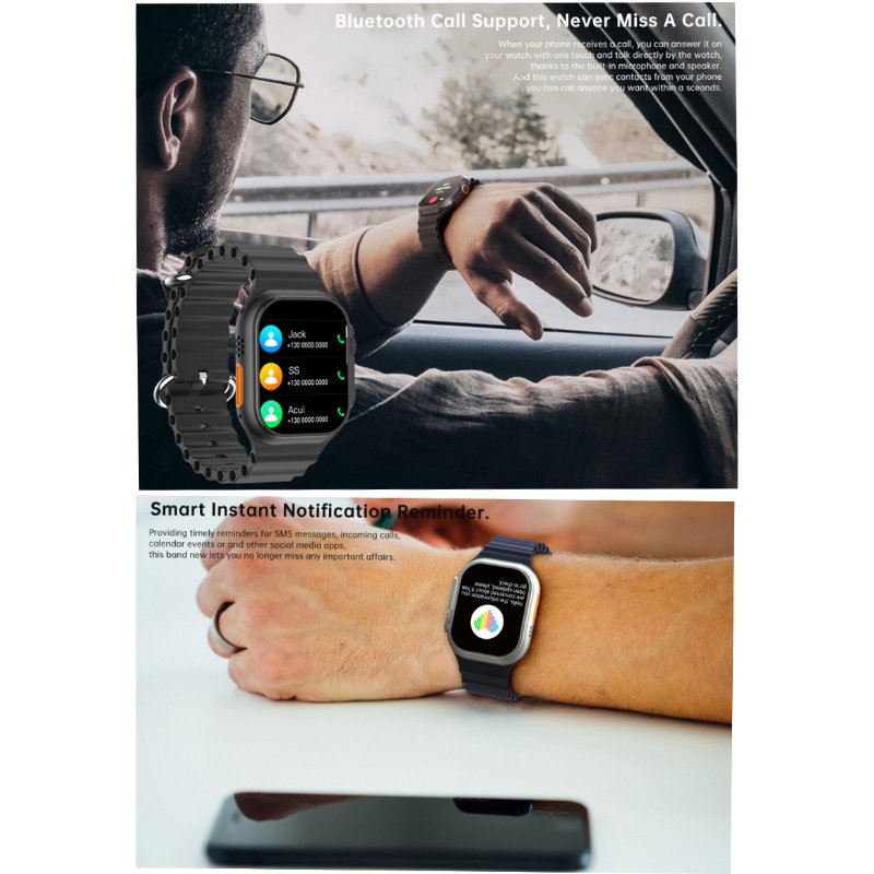 Fitness companion: The W800 Ultra Smart Watch is your ideal fitness partner. Track your steps, gauge distance, monitor calories burned, and choose from an array of movement patterns to suit your workouts. The sleep monitoring feature ensures restful nights, and the alarm clock keeps you on schedule.